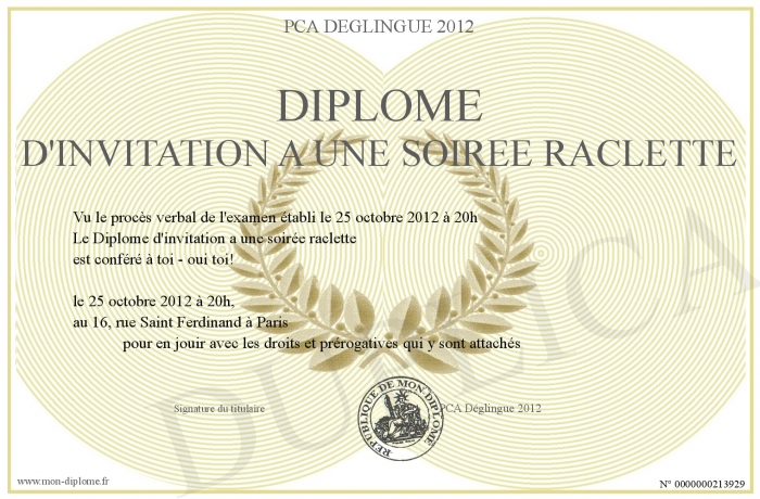 Diplome D Invitation A Une Soiree Raclette